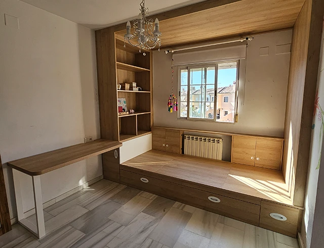 Camas, mesitas de noche, cabeceros, cómodas… Creamos mobiliario a medida que aporta calidez y funcionalidad a tu dormitorio.